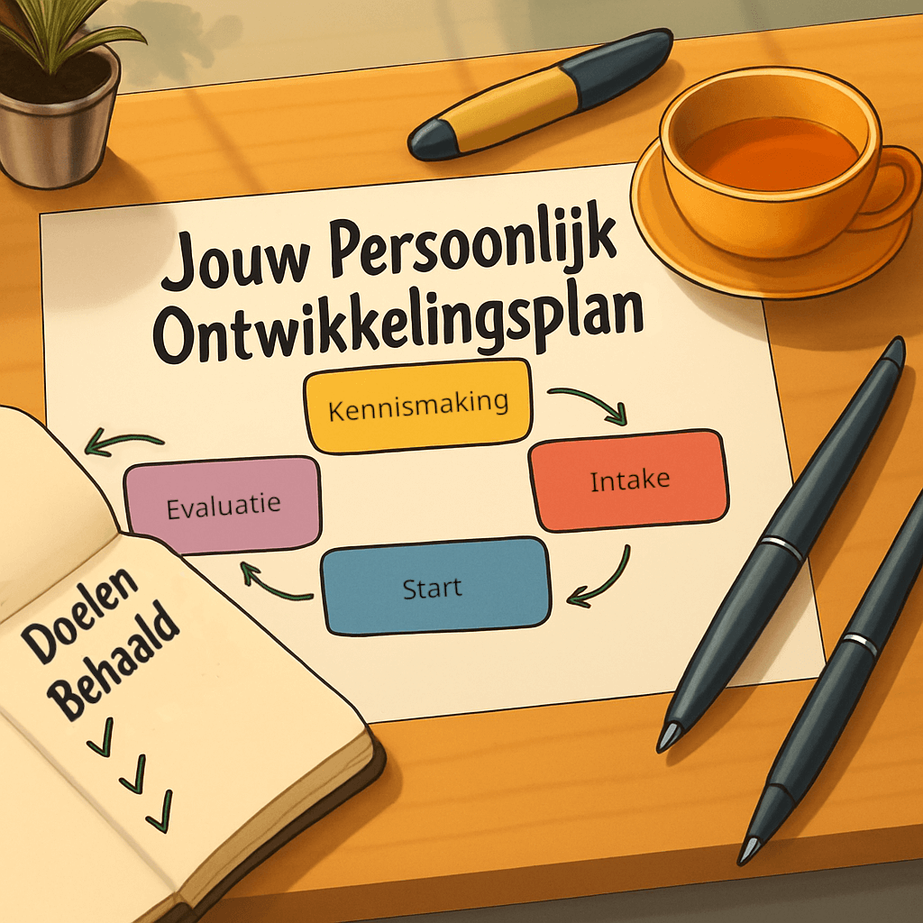 Voordat we aan de slag gaan, neem ik altijd de tijd voor een open en vrijblijvend kennismakingsgesprek. Samen brengen we jouw wensen, situatie en behoeften in kaart en onderzoeken we of er een basis van vertrouwen is om samen te werken. Op basis daarvan bekijken we wat jou verder helpt en zetten we samen stappen richting jouw doelen.